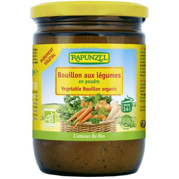 Le bouillon de légumes Rapunzel est 100% végétal et contient de savoureux légumes et des herbes aromatiques savamment combinés. Le tout sans aucun sucre ajouté. Idéal à déguster tel quel en bouillon clair mais aussi pour réhausser les petits plats, sauces et soupes maison.