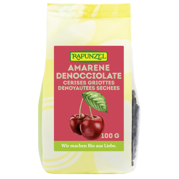 Cerises griottes au goût frais, fruité et légèrement acidulé. Leur parfum est unique et en fait un ingrédient de choix parmi les fruits secs.