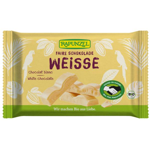 Le plaisir d'un chocolat blanc fondant avec de la véritable vanille Bourbon, issu du programme HAND IN HAND de Rapunzel qui allie écologie et commerce équitable. Avec les matières premières de qualité, le conchage intensif est le véritable secret de ce délicieux chocolat. Grâce au conchage, les riches arômes cacaotés se libèrent petit à petit jusqu'à leur plein épanouissement. Et toute la subtilité et le fondant incomparable du chocolat se dévoilent.