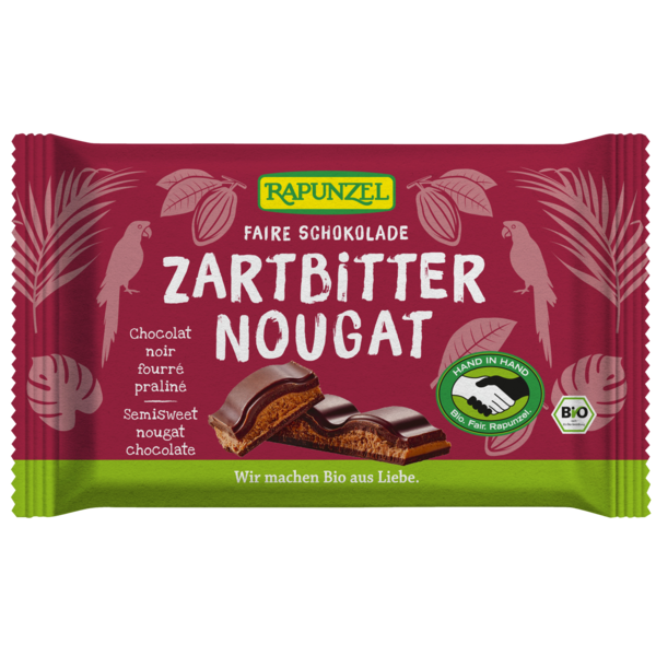 Ce subtil chocolat noir avec un délicieux fourrage fondant au praliné est issu du programme HAND IN HAND de Rapunzel qui allie écologie et commerce équitable. Avec les matières premières de qualité, le conchage intensif est le véritable secret de ce délicieux chocolat. Grâce au conchage, les riches arômes cacaotés se libèrent petit à petit jusqu'à leur plein épanouissement. Et toute la subtilité et le fondant incomparable du chocolat se dévoilent.