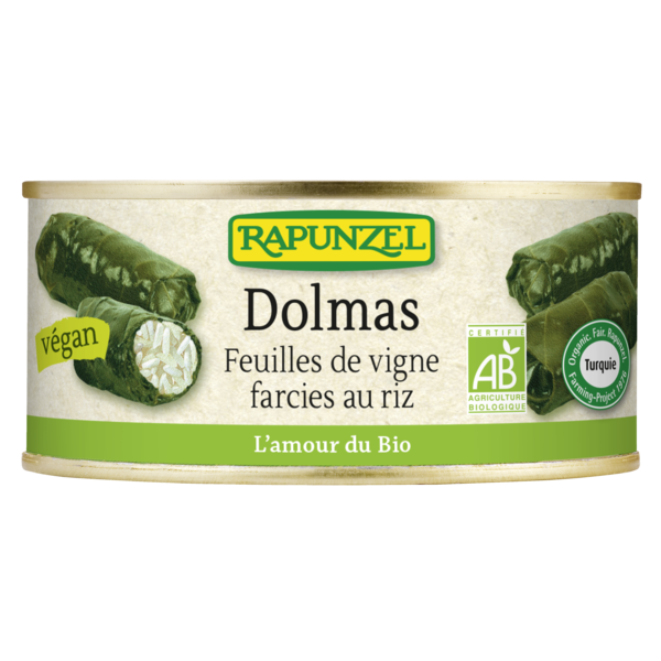 Les tendres feuilles de vigne sont rapidement cuites à l'eau, puis mises en bocaux à la main avec le riz précuit et les épices. Marinées dans l'huile d'olive, les Dolmas restent juteuses et fraîches.