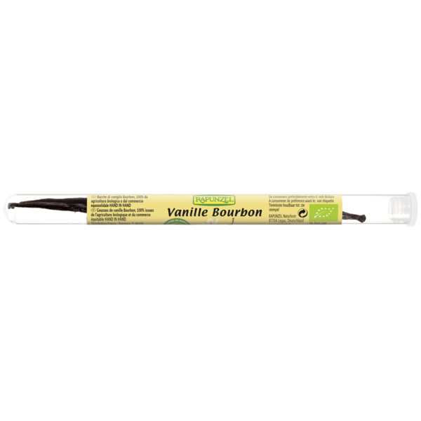 Véritable vanille Bourbon : la «reine des épices». La merveilleuse richesse de l'éventail naturel d'arômes la rend unique. La culture, la récolte et la fermentation de la vanille exigent une grande expérience, beaucoup de soin et du temps. Les gousses de vanille Bourbon sont fermentées avec le plus grand soin pendant plusieurs mois après la récolte : ce n'est qu'ainsi qu'elles peuvent déployer leur arôme incomparable.