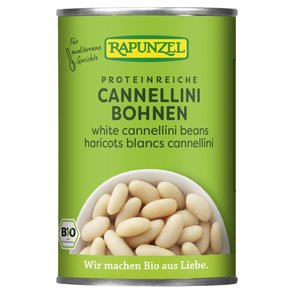 Haricots blancs Cannellini prêts à l'emploi pour une cuisine bio rapide. On évite le temps de trempage et de cuisson puisque les haricots ont déjà été précuits doucement. Les haricots Cannellini ont une saveur douce et parfumée. Ce qui en fait un ingrédient très prisé dans les recettes méditerranéennes.