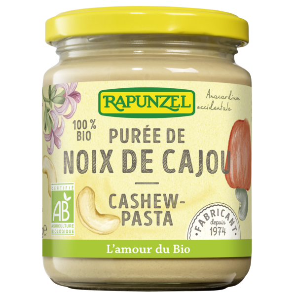 Rapunzel fabrique des purées de fruits à coque depuis 1974. Les noix de cajou sont d'abord grillées, ce qui permet de libérer tout leur arôme, avant d'être finement moulues. Ce savoir-faire vous garantit un goût unique.