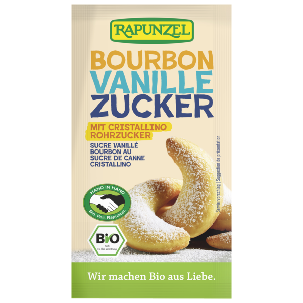 Sucre de canne Cristallino mélangé à de la véritable vanille Bourbon. La véritable vanille Bourbon est considérée comme la «reine des épices». La merveilleuse richesse de l'éventail naturel d'arômes de vanille la rend unique. Le sucre de canne Cristallino a un goût agréable et doux, il est issu du commerce équitable et fourni par nos partenaires HAND IN HAND au Paraguay. Ce sucre vanillé vous servira à sublimer vos préparations sucrées et leur donnera un merveilleux arôme harmonieux de vanille.