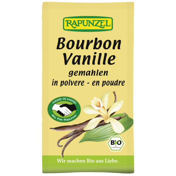 La véritable vanille Bourbon : la «reine des épices». La merveilleuse richesse de l'éventail des arômes naturels de vanillela rend unique. La culture, la récolte et la fermentation de la vanille exigent une longue expérience, beaucoup de soin et du temps: ce n'est qu'ainsi qu'elle peut déployer son arôme incomparable. Tout est fait à la main.